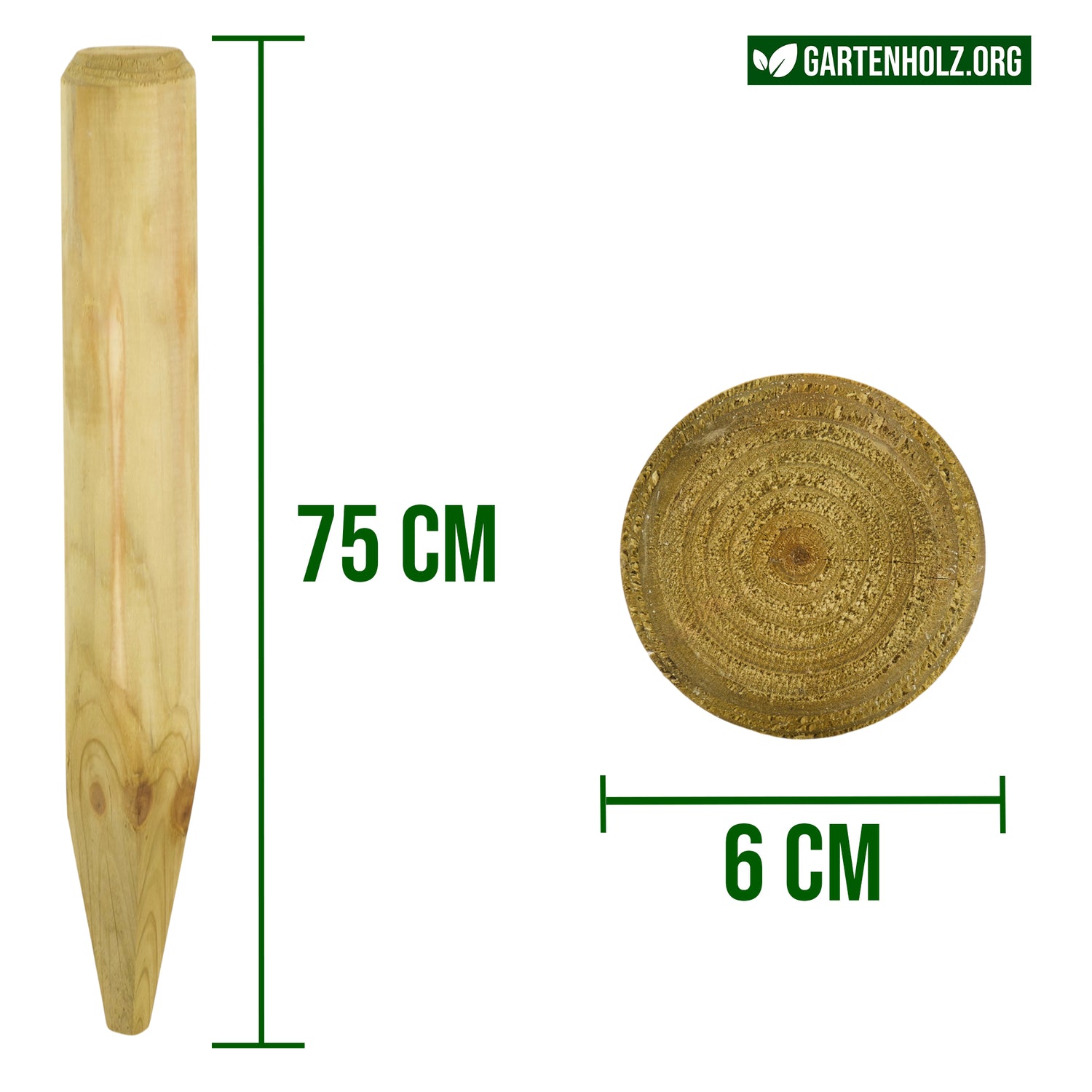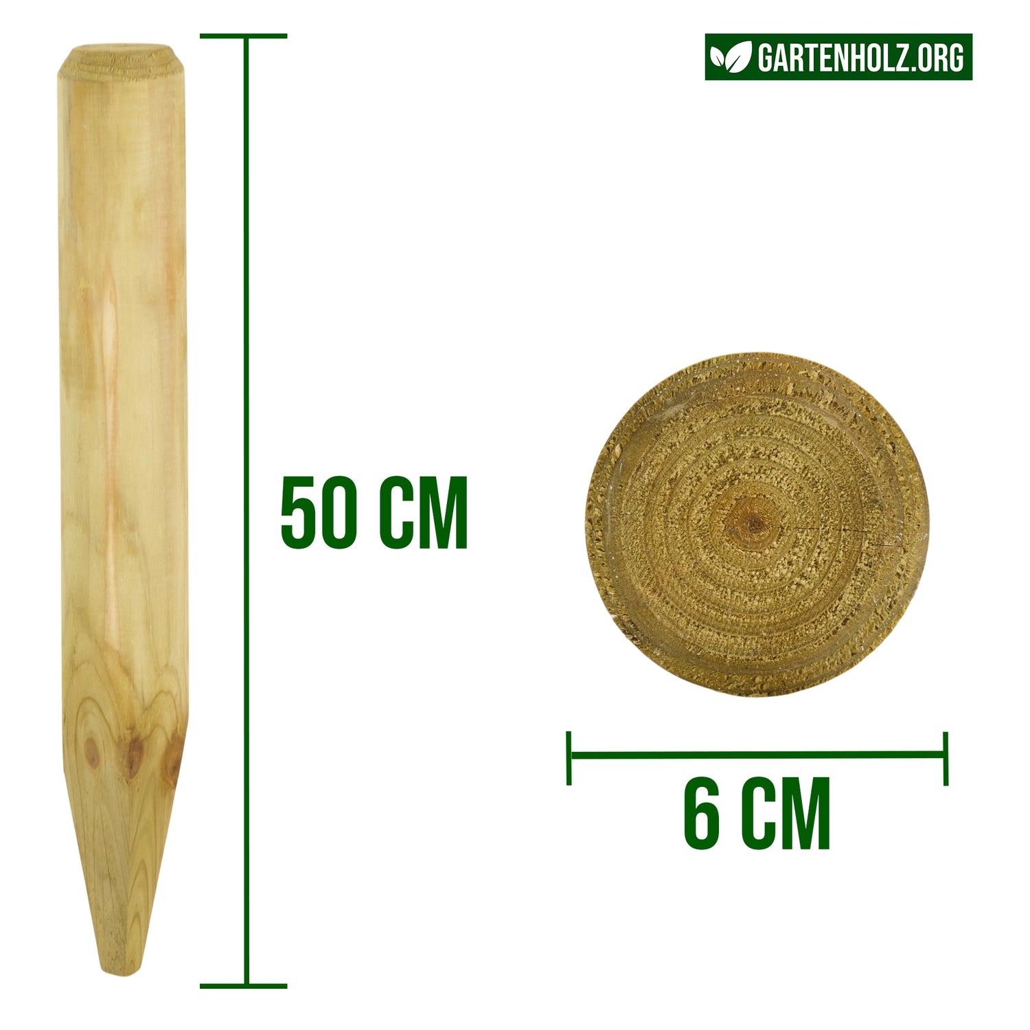 Mit einem Durchmesser von 6 cm und wahlweise in den Längen 30, 50 oder 70 cm erhältlich, bietet die Minipalisade zahlreiche Einsatzmöglichkeiten. Sie eignet sich perfekt zur Einfassung von Beeten, Wegen oder Rasenflächen, kann kleine Hänge abstützen oder dekorative Akzente im Garten setzen. Dank der kompakten Maße ist sie auch für kleinere Projekte oder geschwungene Abgrenzungen bestens geeignet.