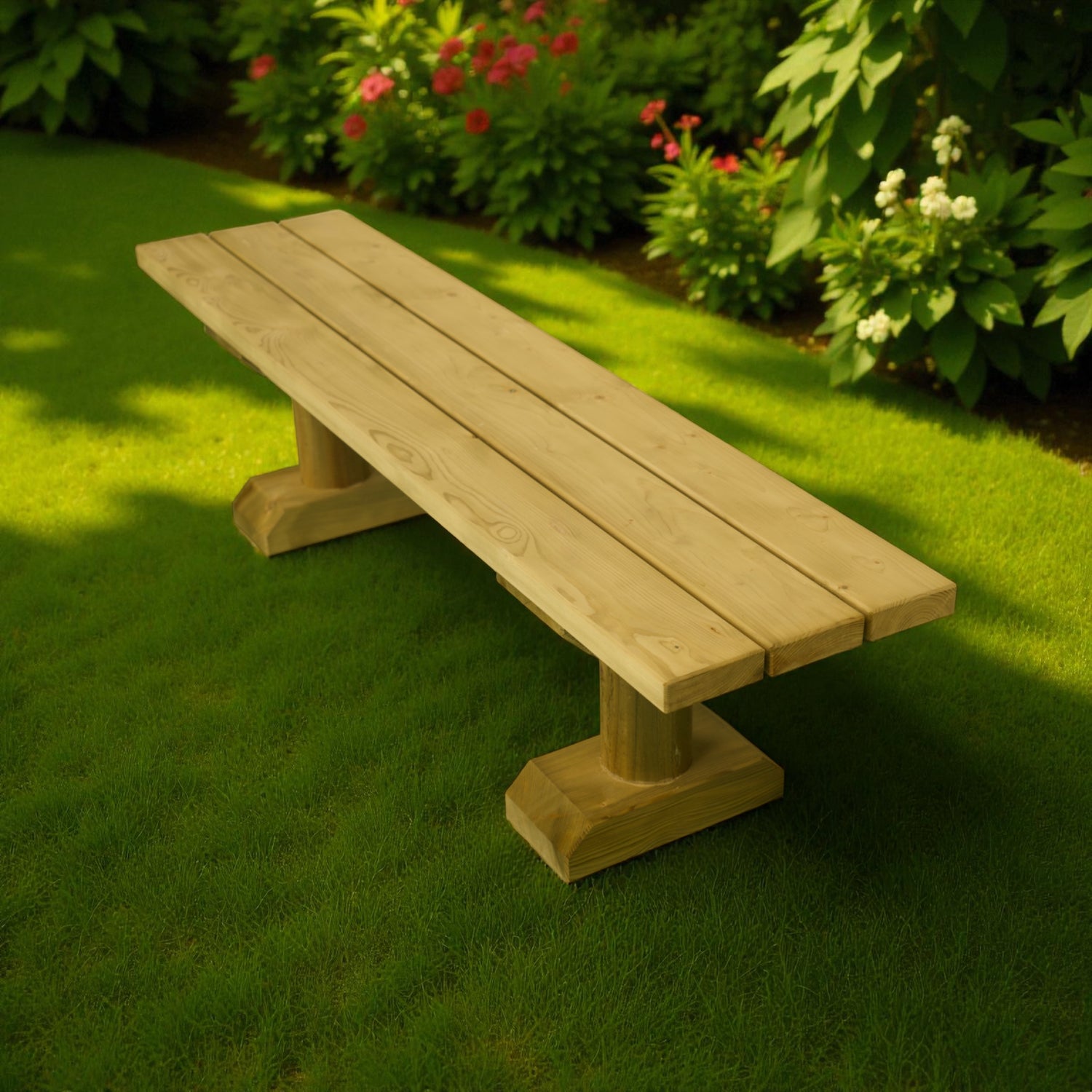 Die Gartenbank „Oestertal“ ohne Lehne überzeugt durch ihre schlichte Form und die robuste Bauweise aus massivem Sauerländer Nadelholz. Dank der Kesseldruckimprägnierung (KDI) ist das Holz zuverlässig gegen Feuchtigkeit, Witterung und Schädlinge geschützt und somit ideal für den ganzjährigen Einsatz im Außenbereich geeignet.