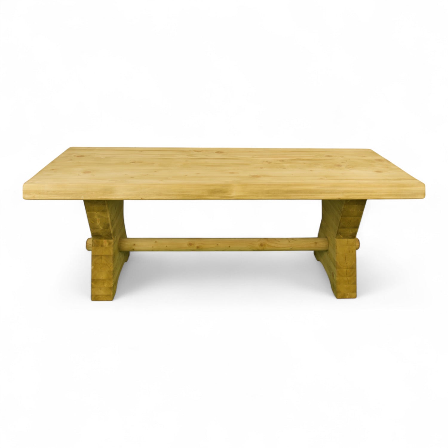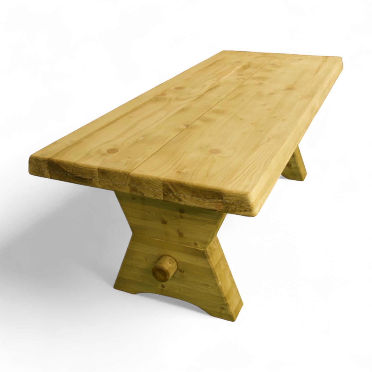 Dank seiner stabilen Bauweise und der großzügigen Fläche ist der Tisch nicht nur praktisch, sondern auch langlebig und belastbar. Die natürliche Holzoptik sorgt dafür, dass sich der „Elstertal“ harmonisch in jede Umgebung einfügt und sowohl im privaten Garten als auch in öffentlichen Bereichen eine gute Figur macht.