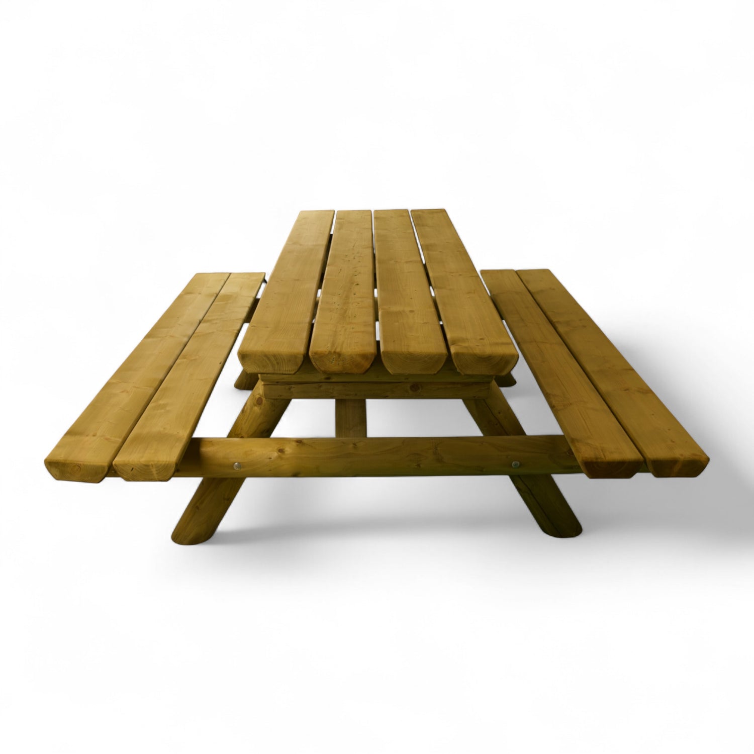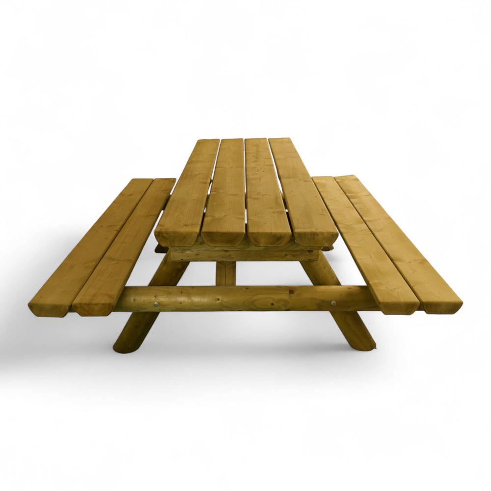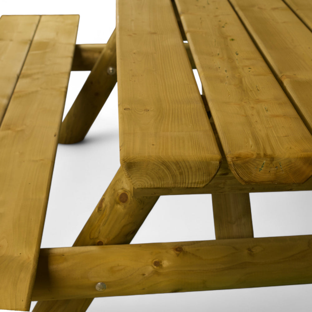 Mit seiner großzügigen Tischfläche und den beidseitig fest montierten Bänken bietet der „Hönnetal“ reichlich Platz für Familie, Freunde oder Vereinsrunden. Die robuste Konstruktion sorgt für Standfestigkeit und eine lange Lebensdauer – selbst bei intensiver Nutzung. Dank seiner schlichten, natürlichen Holzoptik fügt er sich harmonisch in jede Umgebung ein und lädt zu geselligen Stunden im Freien ein.
