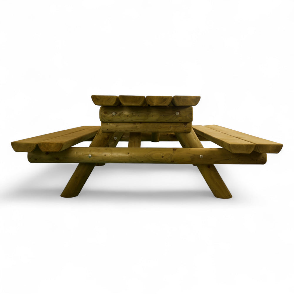 Der Picknicktisch „Hönnetal“ vereint Tisch und Sitzgelegenheiten in einem stabilen Möbelstück und ist damit die perfekte Lösung für Garten, Terrasse oder öffentliche Plätze. Gefertigt aus massivem Nadelholz aus dem Sauerland und durch die Kesseldruckimprägnierung (KDI) dauerhaft vor Witterung, Feuchtigkeit und Schädlingen geschützt, eignet er sich ideal für den ganzjährigen Einsatz im Freien.
