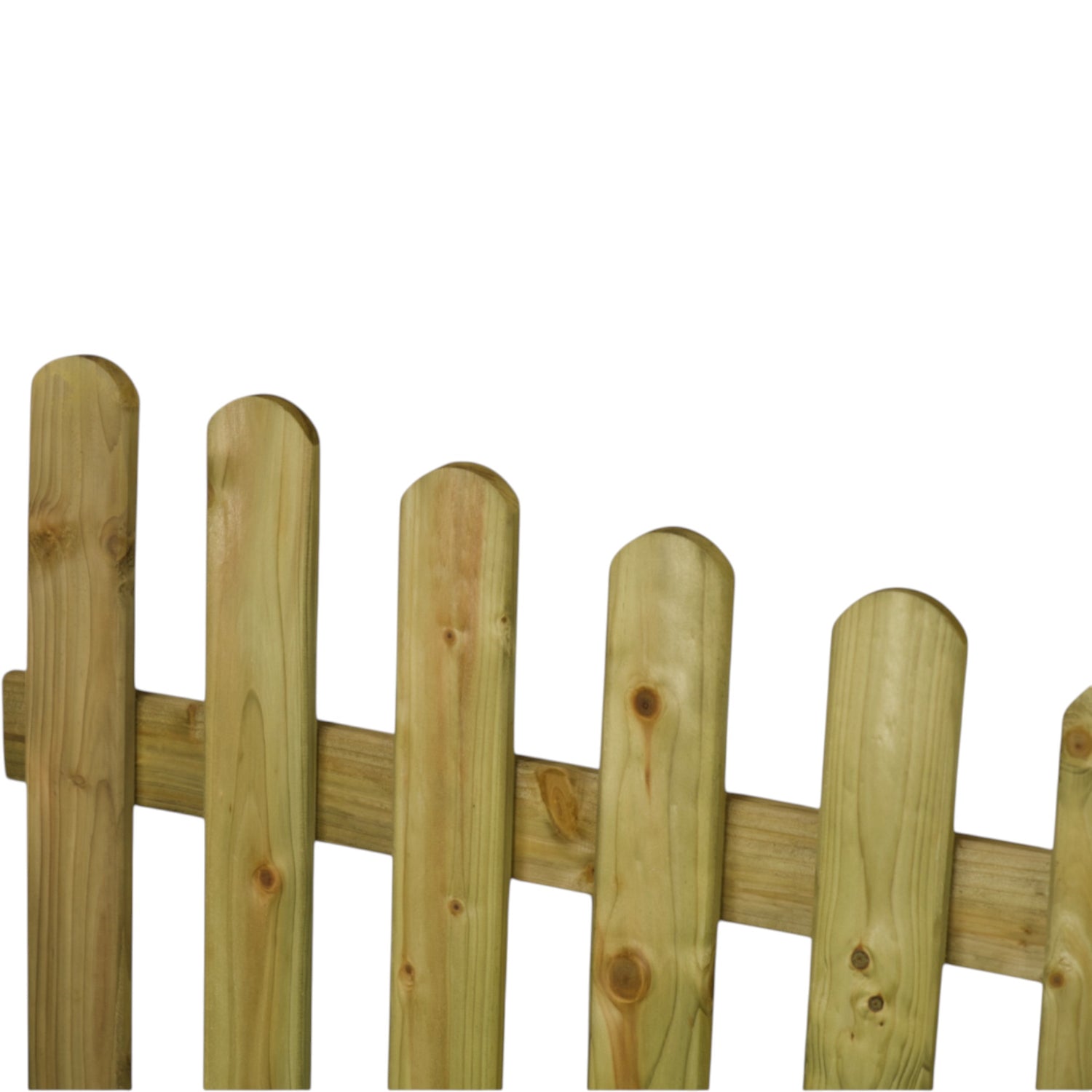 Dank der abgerundeten Lattenköpfe und der sanften Bogenform entsteht ein einladender, ländlicher Charme – ideal für naturnahe Grundstücke, Tiergehege oder den liebevoll gepflegten Familiengarten.