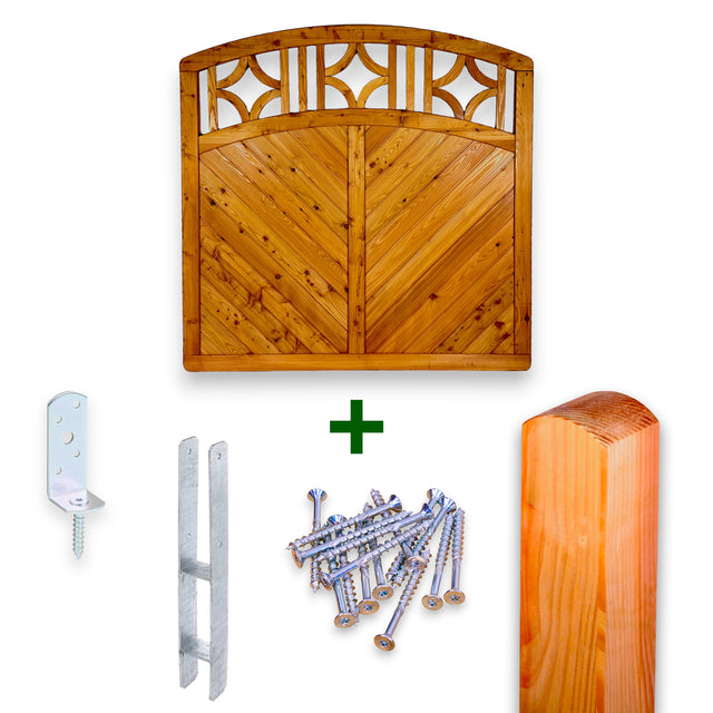 Im Lieferumfang enthalten sind das Sichtschutzelement, die passenden Pfosten sowie alle benötigten Befestigungsmaterialien, sodass eine einfache und sichere Montage gewährleistet ist. Mit dem „Bremberg“ Komplettset schaffen Sie eine langlebige, pflegeleichte und optisch ansprechende Sichtschutzlösung, die Ihren Garten stilvoll ergänzt.