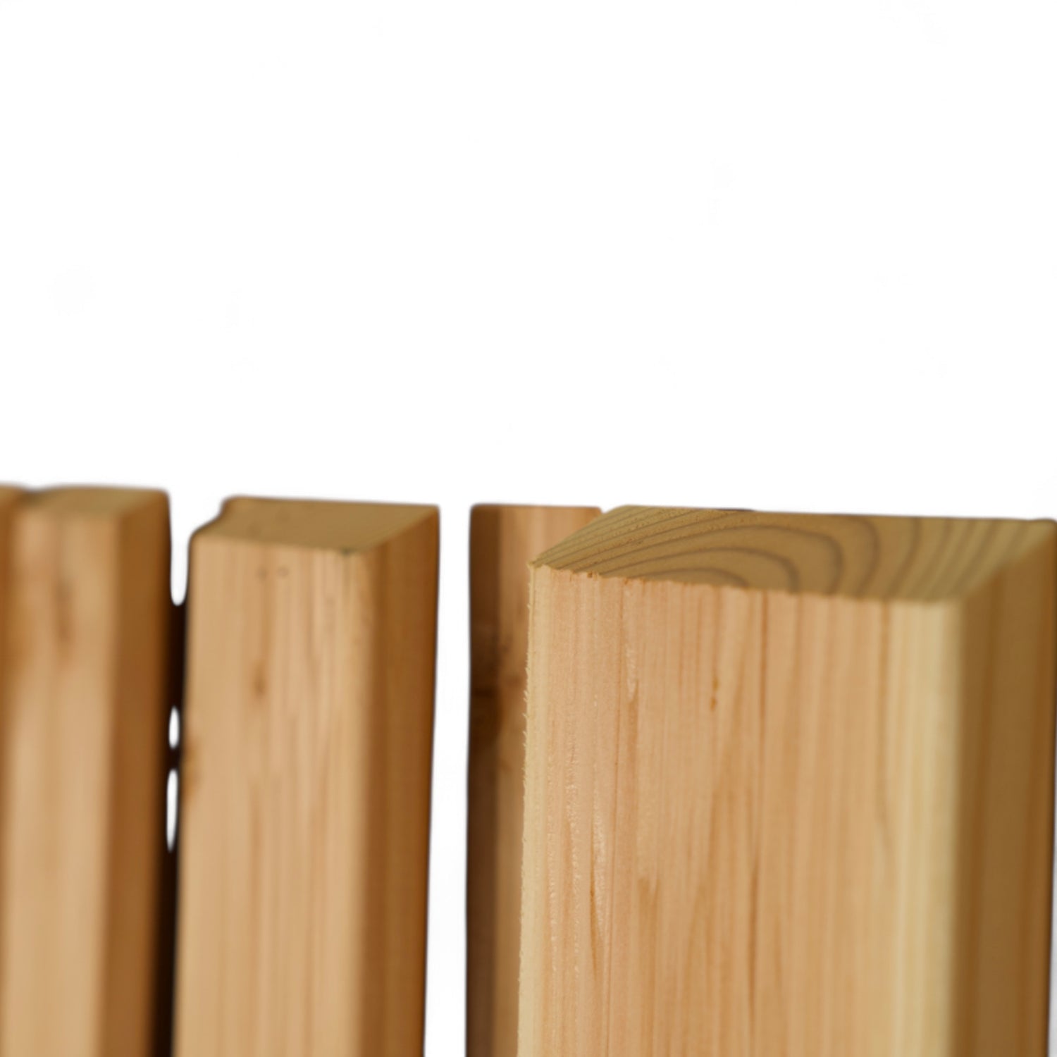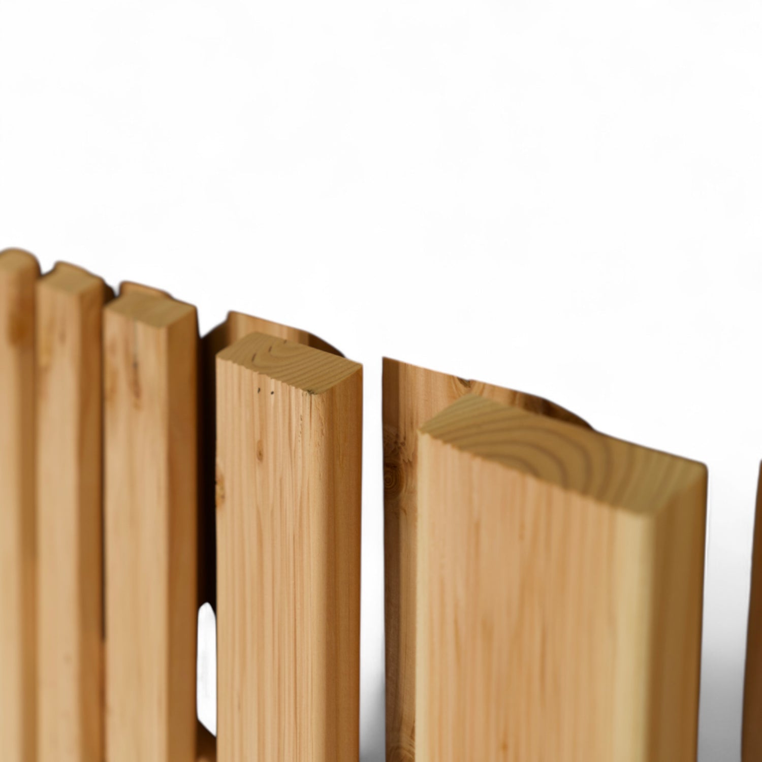 Der Hunau ist ein massives Sichtschutzelement aus unbehandelter Douglasie, das durch seine klare, natürliche Optik besticht. Die dicht gesetzten Lamellen sorgen für eine gleichmäßige, ruhige Fläche und verleihen dem Zaun eine hochwertige Ausstrahlung. Die warmen Farbtöne und die markante Maserung der Douglasie bringen ein Stück Natur in den Garten und machen jedes Element zu einem Unikat.