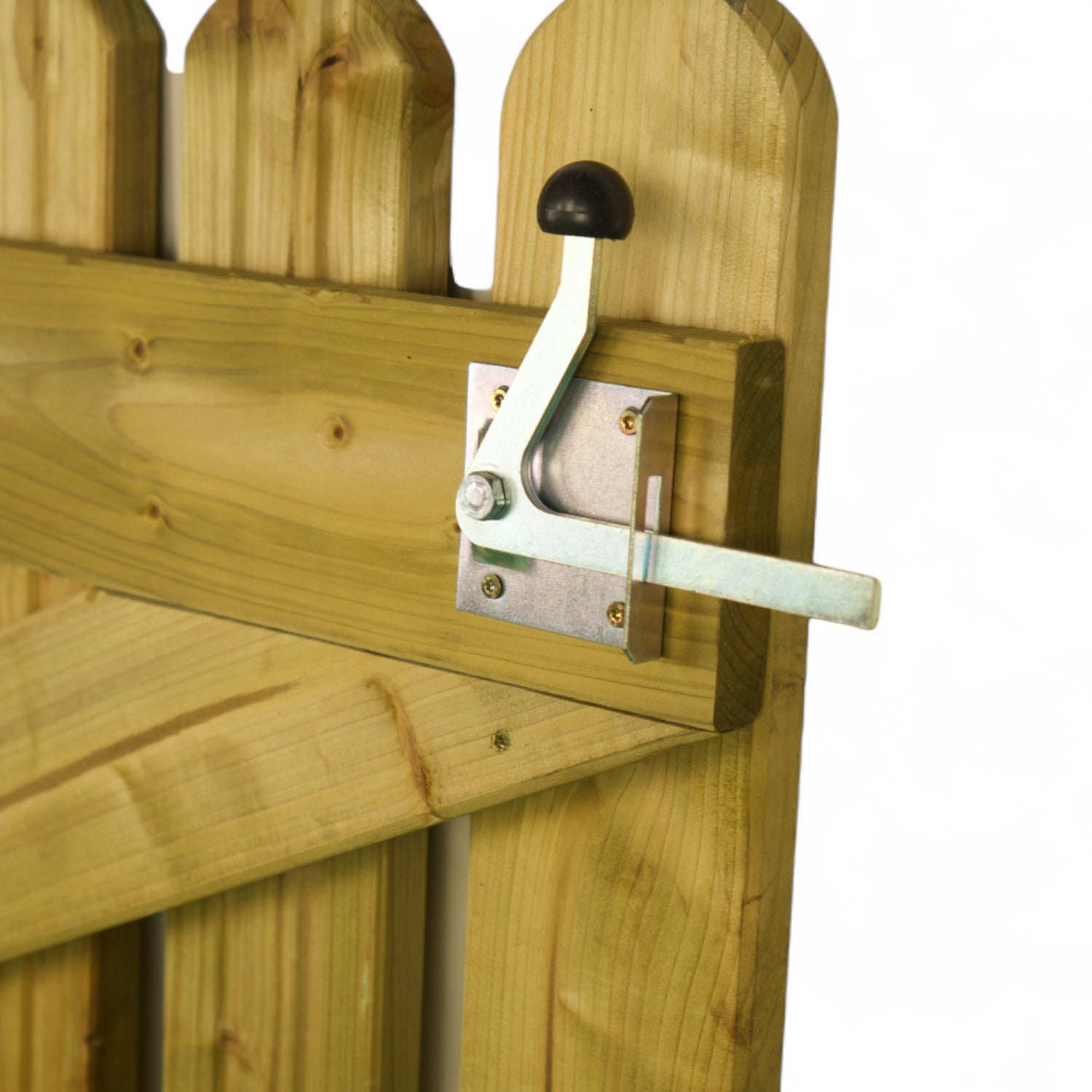 Das Törchen wird komplett mit allen benötigten Beschlägen geliefert – inklusive Kloben, Ladenbändern und einer passenden Schließanlage. So lässt sich das Tor schnell und unkompliziert montieren und ist sofort einsatzbereit.