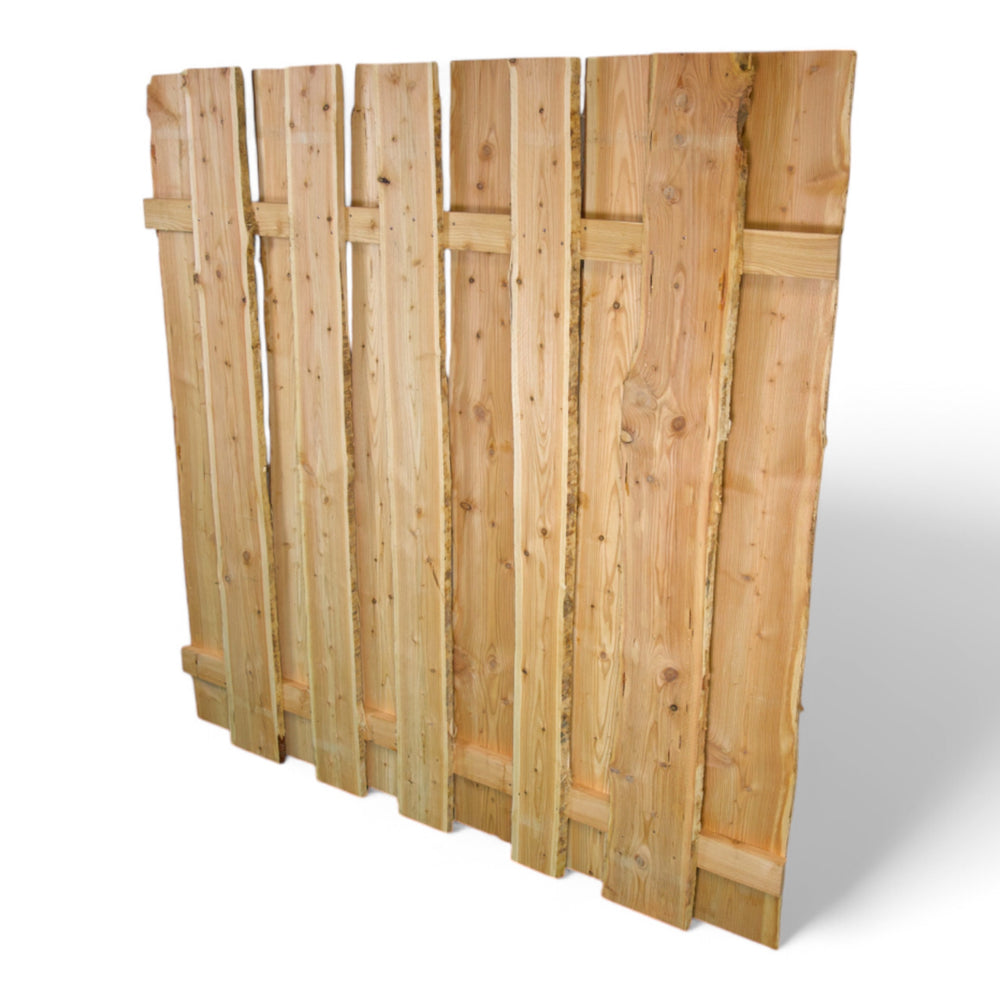 Rustikal, dicht und authentisch: Der Sichtschutzzaun „Mittelsberg“ aus naturbelassener Lärche bringt echten Charakter in deinen Garten. Durch die doppelte Beplankung mit sägerauen, unbesäumten Latten entsteht eine blickdichte Fläche mit lebendiger, natürlicher Optik – perfekt für alle, die es ursprünglich mögen.