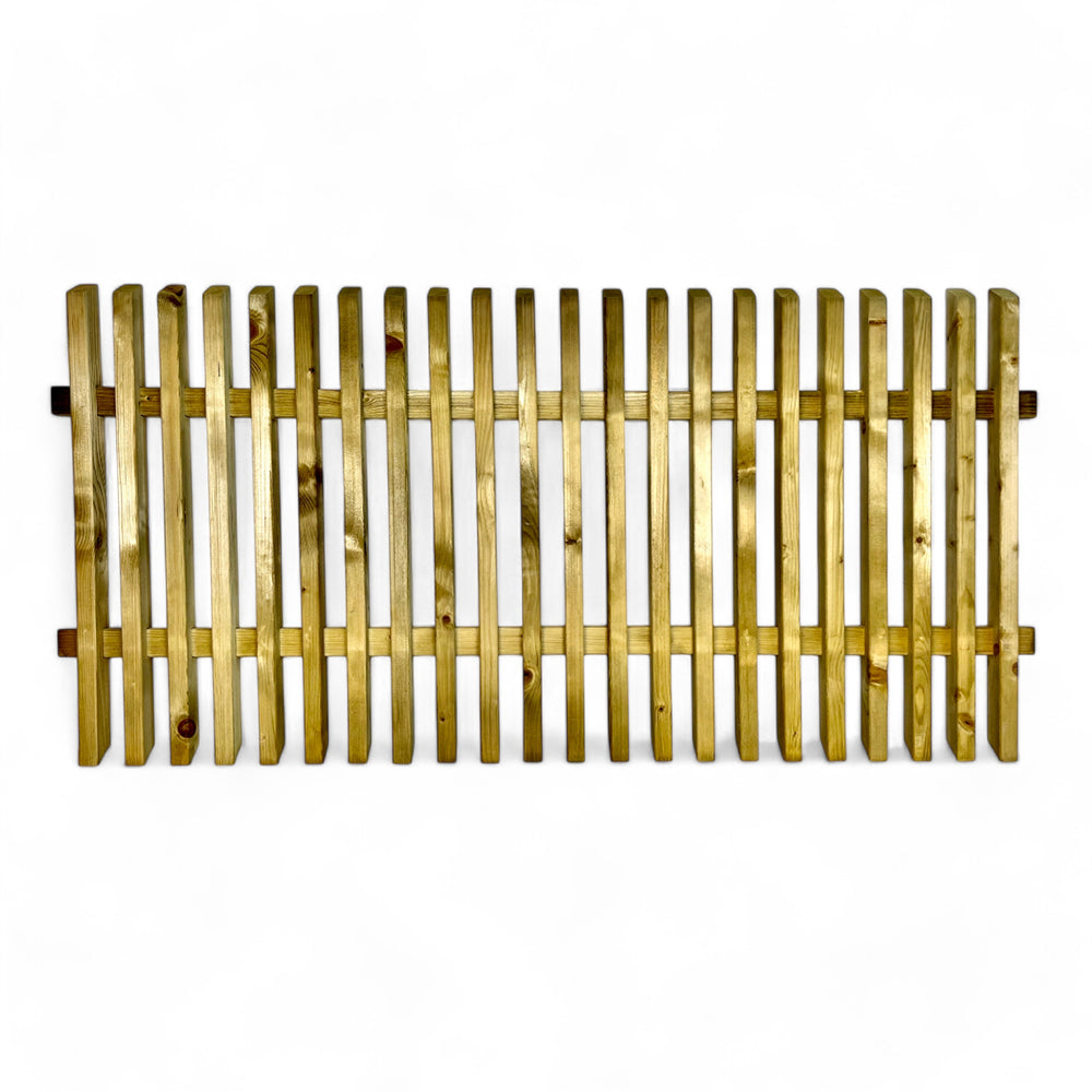 Der Diemelzaun in der Größe 180 x 90 cm verbindet traditionelle Optik mit moderner Stabilität. Die senkrecht angeordneten Latten aus druckimprägniertem Nadelholz schaffen ein harmonisches und offenes Gesamtbild – perfekt für Gärten, die eine klare Struktur mit natürlichem Charme verbinden möchten.